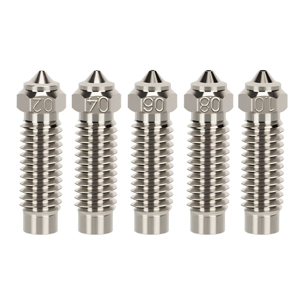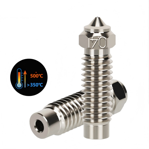 Crafted from chromium-zirconium copper with a nickel-plated surface, the nozzle delivers exceptional thermal conductivity and high-temperature resistance. The electroplated nickel layer effectively reduces oxidation reactions under high temperatures, ensuring superior printing results.