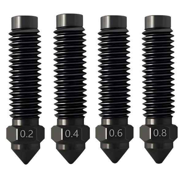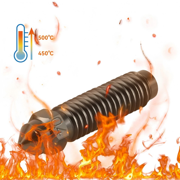 Crafted from hardened steel, the nozzle offers exceptional high-temperature resistance and wear resistance. It effectively reduces oxidation reactions under high temperatures, enabling long-term printing with high-temperature filaments.