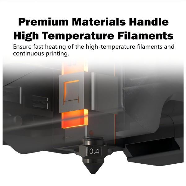 Made of high-hardness steel and processed through professional heat treatment, the nozzle exhibits outstanding wear resistance. It supports prolonged printing with various consumables and can effortlessly handle high-hardness printing materials.
