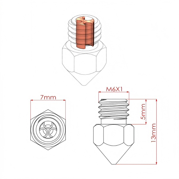 Fabriqué avec une coque extérieure en laiton de haute qualité et un noyau intérieur en cuivre au chrome-zirconium, il permet un transfert rapide de la chaleur et une fusion rapide du filament, offrant ainsi un support solide pour l'impression 3D à grande vitesse.
