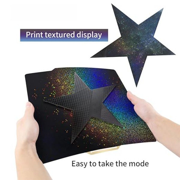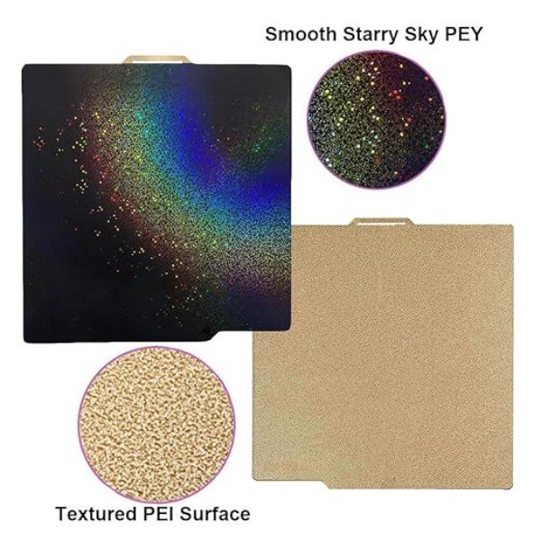 片面はテクスチャード加工されたPEIベッドで、フロスト加工されたステッカーの表面に独特のフロストタッチを表現します。もう一方の面は滑らかなPEYシートで、星とドットの模様が鮮やかに輝きます。