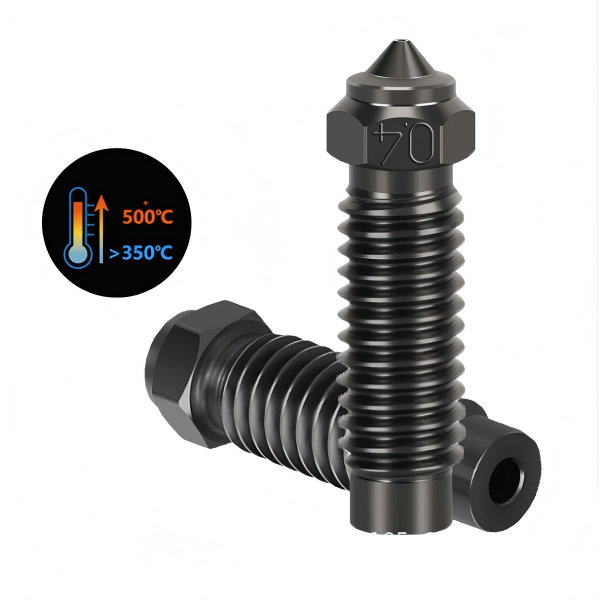 Crafted from hardened steel, the nozzle offers exceptional high-temperature resistance and wear resistance. It effectively reduces oxidation reactions under high temperatures, enabling long-term printing with high-temperature filaments.