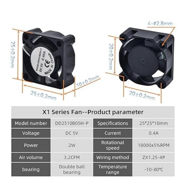 - Efficient Cooling: This hotend fan with 18,000 rpm/min rotation speed, helps maintain optimal temperatures for consistent, high-quality prints.
