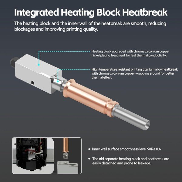 - Высокая термостойкость: хотэнд изготовлен из высококачественной латуни с хромированным покрытием и алюминиевого сплава, который имеет более высокую теплопроводность, более высокую прочность, более сильную защиту от окисления, более длительный срок службы и может поддерживать высокотемпературные нити.